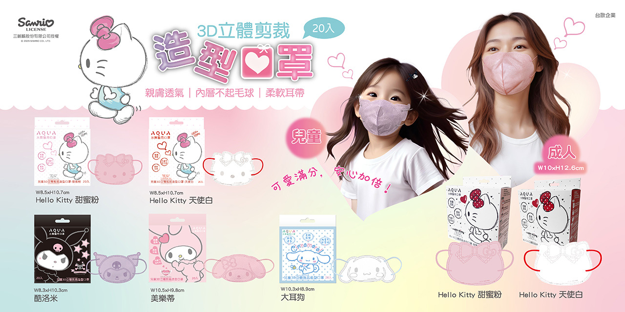 【三麗鷗】美樂蒂造型剪裁-兒童3D口罩 (20入/盒)