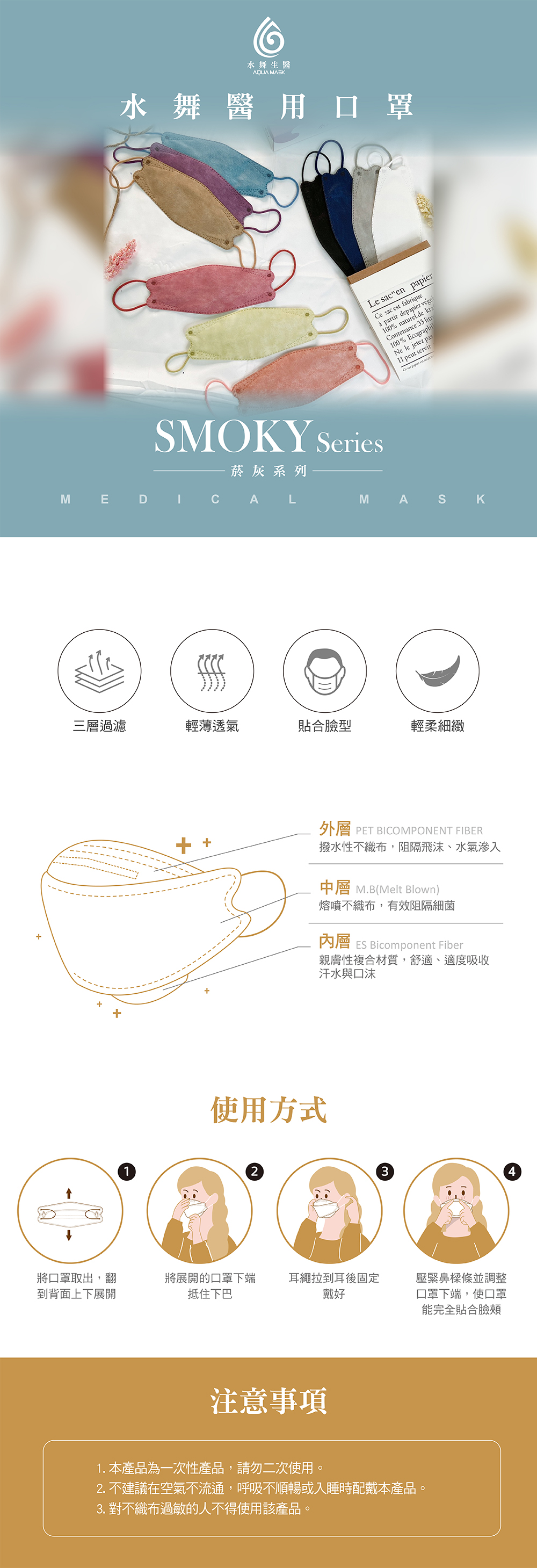 主要成分: 表面層(外):PP Spunbond潑水性不織布