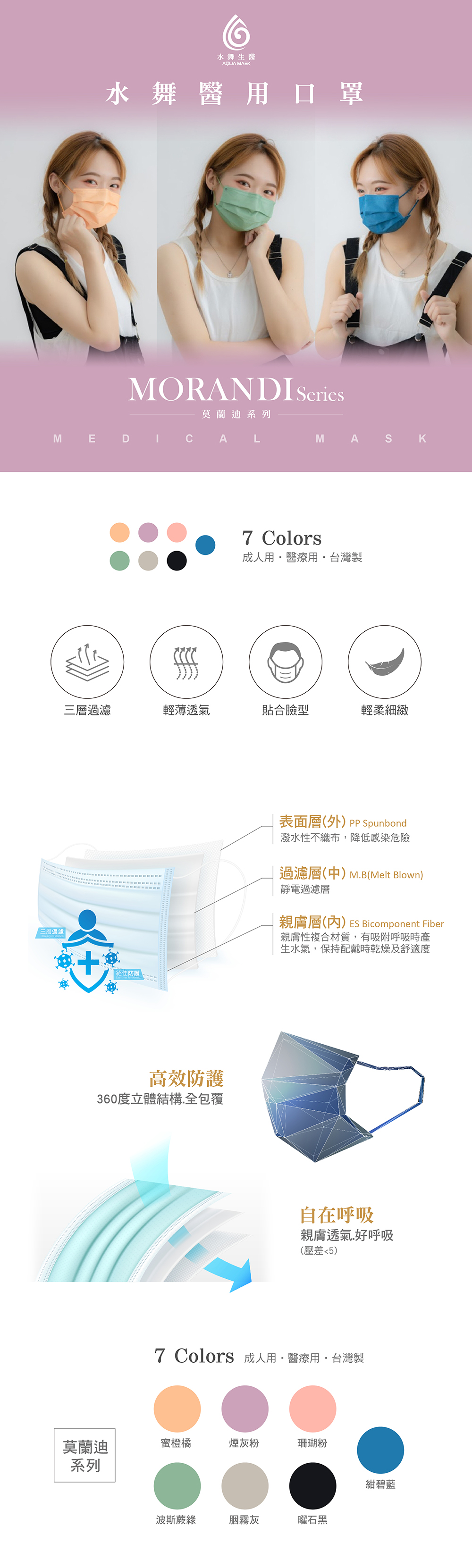 親膚性複合材質 (吸附呼吸時產生水氣,保持配戴時乾燥及舒適度)
