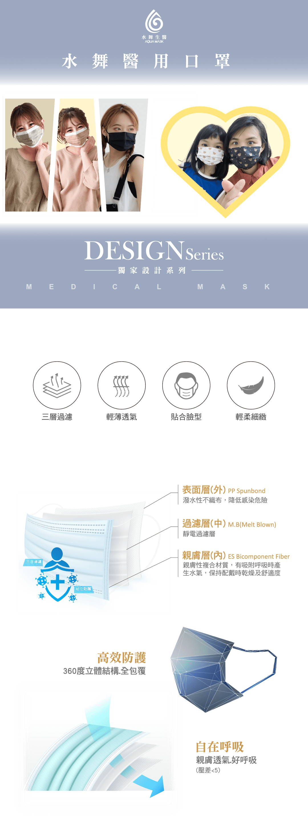 親膚性複合材質 (吸附呼吸時產生水氣,保持配戴時乾燥及舒適度)